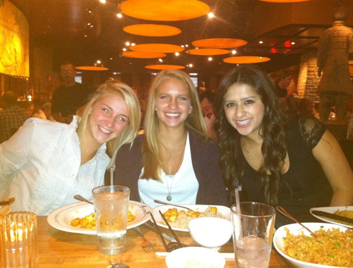 I bet you all are thinking, "Hey who is that new girl in the pics?!"...Well, it's Belle. She just got here from Newfoundland and is living with my parents for the year! She's as cute as a button and speaks pretty good English if I do say so myself...We had a couple of good conversations revolving around how much Americans eat (she was shocked when our waitress brought over a coke refill before her last one was completely empty)...and we had to explain to her how Ashley's Bridal "Shower" coming up didn't mean..shower with water shower..ha. Funny stuff.