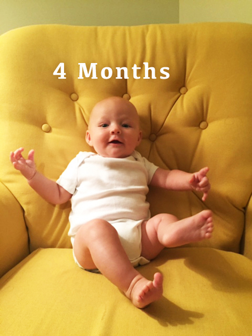 You are growing non-stop buddy! At 4 months you are 26 inches long and 15 pounds. You are drooling like a fool. Your shirts are always wet. Fun for all;) You went on your first four plane rides when going on a family trip to Hilton Head, SC- Which means you also saw the ocean for the first time. Lots of milestones here at 4 months.